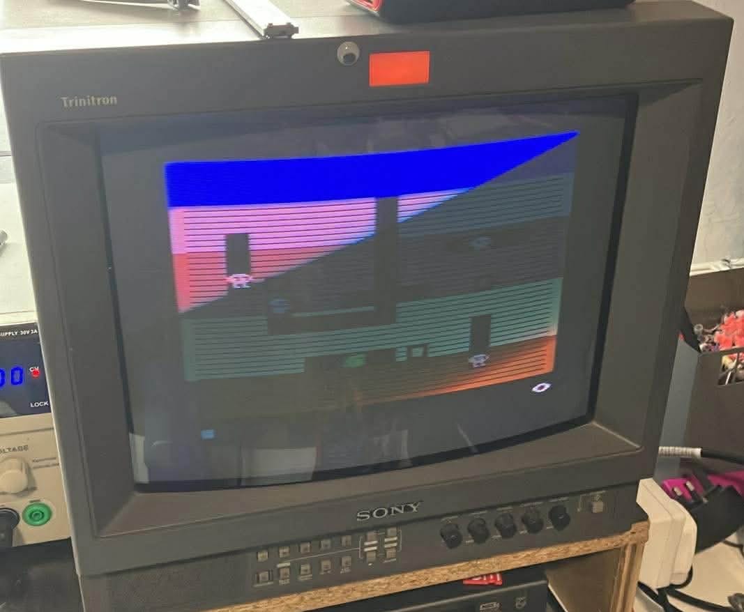 I used my Uno SD cart to check with Space Invaders at first, as I know the colours of that game by heart. The invaders were all grey, with other colours not quite right. I worked it out that my Uno cart may have the NTSC version of the game. I used my original cart and the colours were correct, although the colour adjustment pot on the main board was intermittent, turning the image black and white. I’ll try cleaning it out with De-Oxit first and replace it if it still doesn’t function properly.